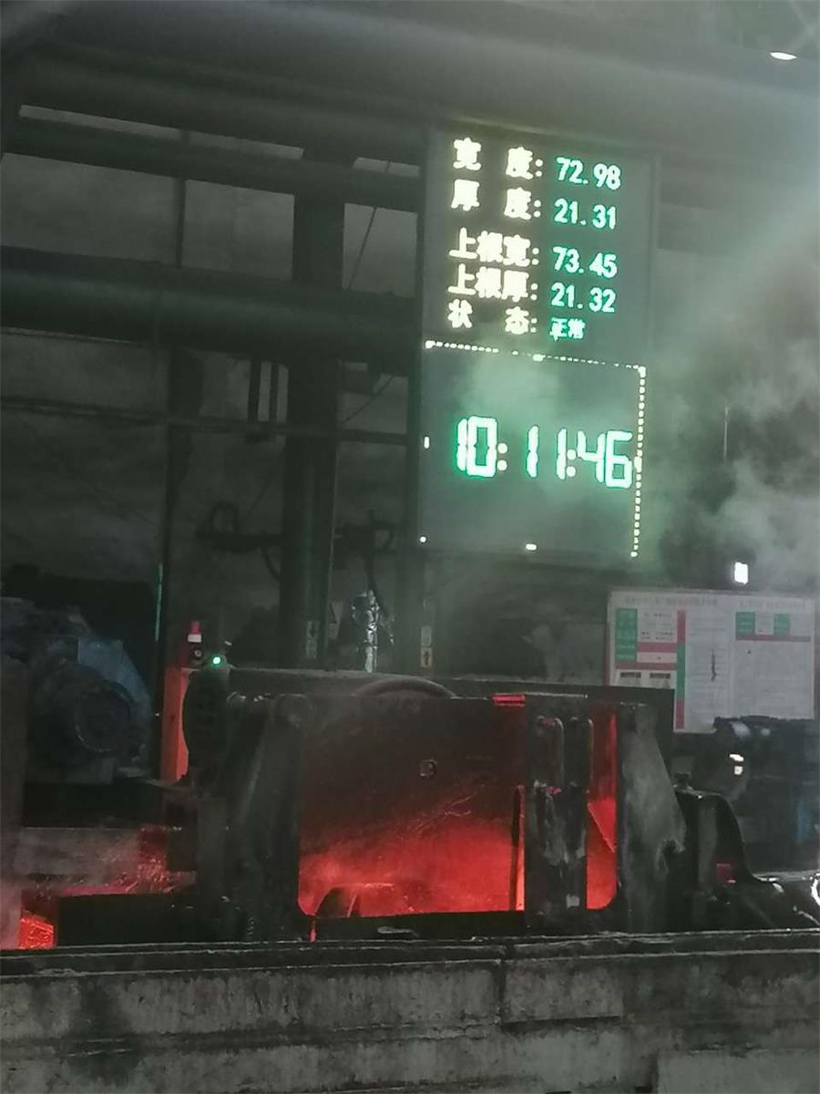 现场LED显示屏:现场显示轧材测量的宽度值、厚度值、设备运行状态;且LED显示屏可通过交换机接收其他设备发送的数据。