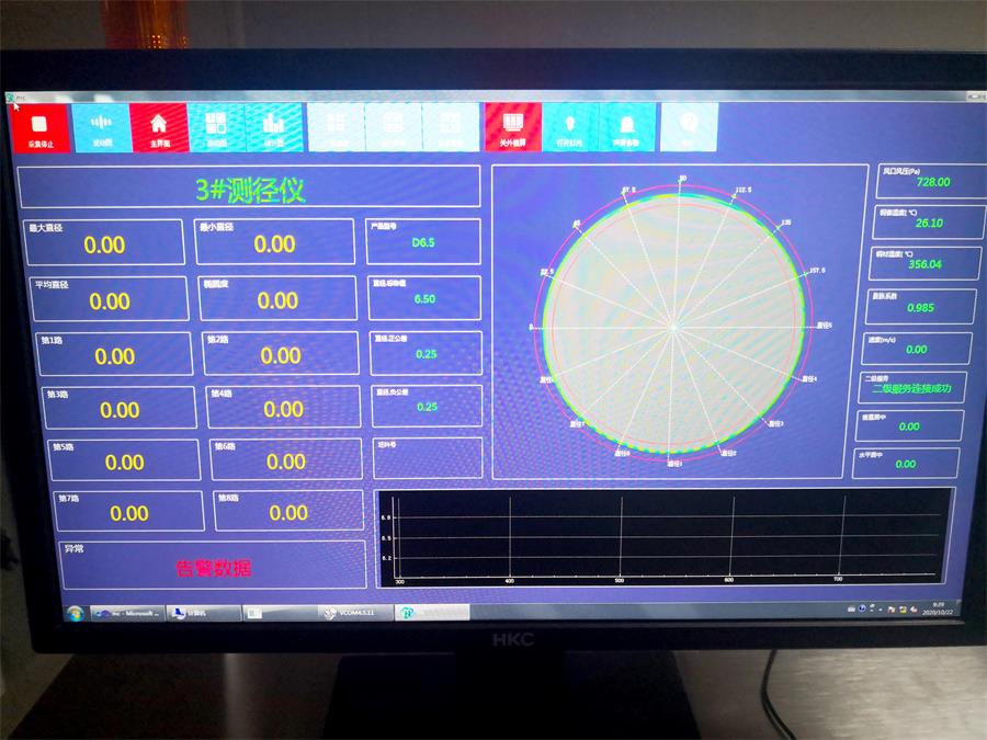 一般而言,外接大显示屏安装在较高位置,方便被不同位置的人观测到,上面显示了测量外径、椭圆度及运行状态等信息。
