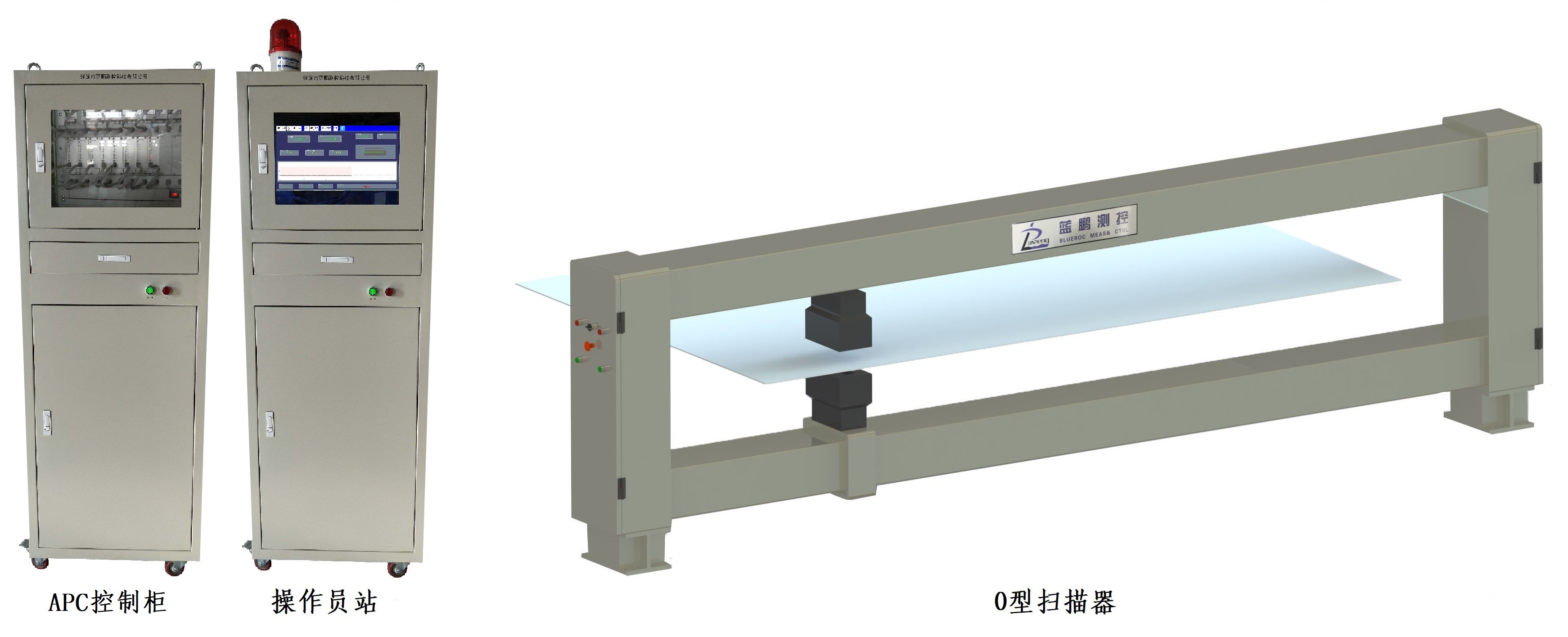 射线测厚仪的整套系统主要包括O型扫描架、操作员站、APC控制系统和测厚仪支架(图中未显示)、冷水机(图中未显示)等组成。扫描架的主要部件有厚度传感器、扫描架本体、PLC、导轨和滑块等。