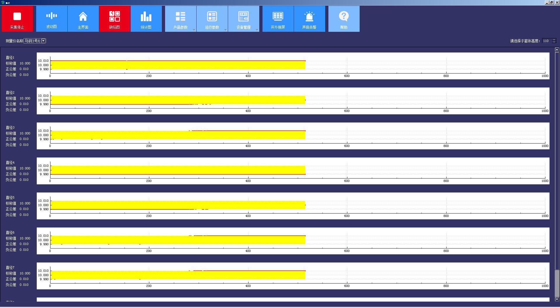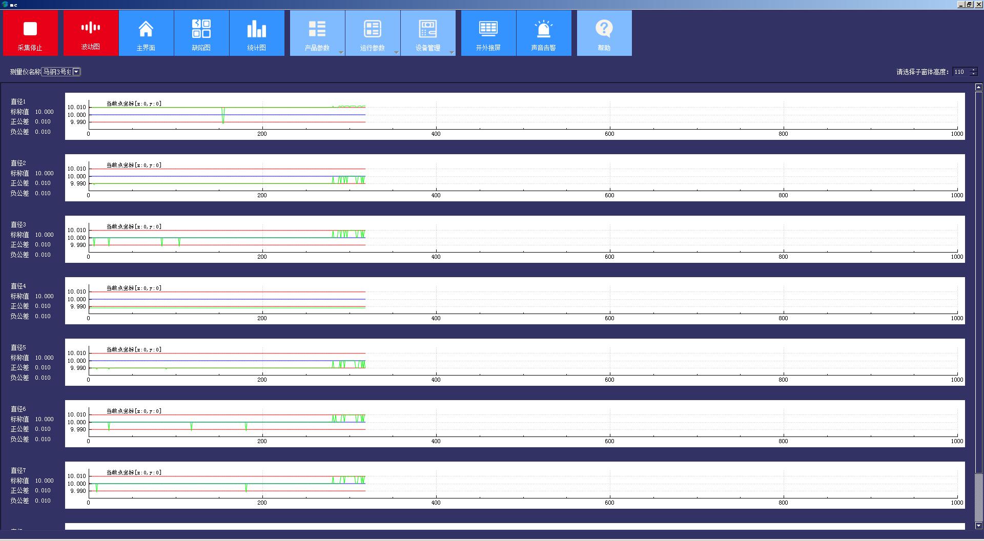 蓝鹏测控软件是一款应用于上位机的数据管理软件,该院见使用C#语言开发,可以快速的完成对数据的处理和储存。测控软件安装在上位机电脑中通过各种类型的接口从测量仪器上获测量参数可以是长度、宽度、直径、温度等数值。经过数据处理之后以趋势图、波动图、缺陷图及统计图片等方式显示数据,支持圆形、高度、宽度、厚度等截面图动态显示。处理完的数据可以根据自己的喜好选择显示界面,也可以将数据显示在led屏幕上面。软件还会将数据传输到云数据库平台,将数据储存起来,通过移动端来显示数据。