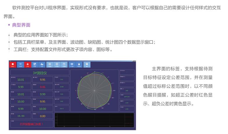 蓝鹏测控平台最初的目的只是应用在蓝鹏自产的测径、测宽、测厚等诸多产品。计算机语言的可延展性、二次开发性,将该测控软件不在局限于工业生产测量行业。