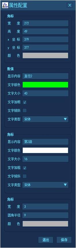 4、选择主视图区域生成的控件,将弹出如右图“2”所示属性配置窗口。