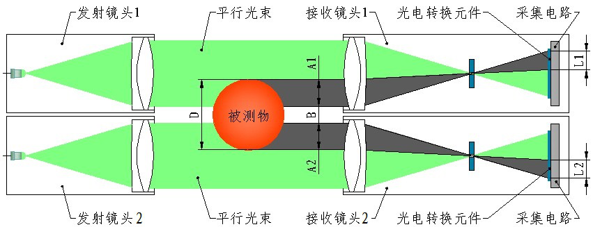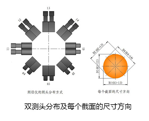 JG08/04Z-D/SG165-A型测径仪为组合式测径仪,内共设置八路70单测头和四路由70单测头组合的165双测头。其中70单测头的测量范围为0~70mm,用于测量直径φ10~φ50mm的轧材;165双测头的测量范围为35~165mm,用于测量直径φ50~φ150mm的轧材