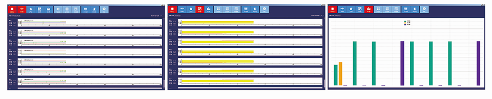 主界面显示中,除了以颜色不同显示数据之外,还支持以趋势图、界面图的型式来显示待测的实时数据,从而方便用户更直观的了解测量数据的偏差。如下: