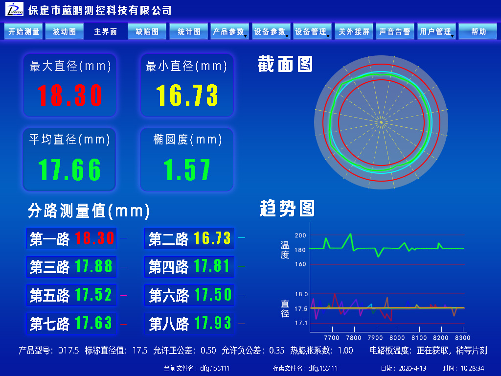 拿线缆生产行业来说,用的最多的就是测径仪,测径仪主要是用于在线测各种产品的直径信息,可以在线测量最大直径、最小直径、平均直径、椭圆度等信息。而这些数据都会显示的一块led屏幕上面。除了显示数据外还有超差(cha)报警的功能。